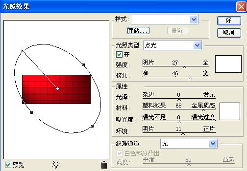 14、选择背景图层,执行菜单栏中的“滤镜”“渲染”“光照效果”命令,在弹出的对话框中设置参数如图24所示,图像最终效果如图25所示。