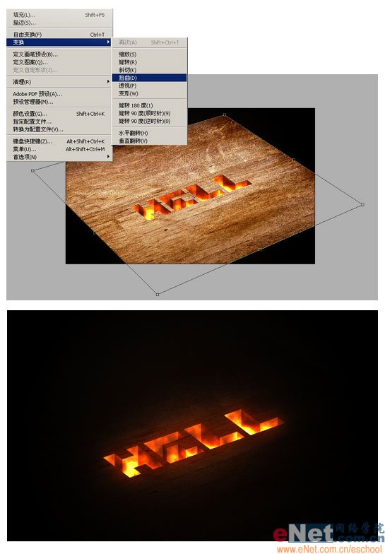 13.这里我们在另外加入一块木板的纹理素材图片,用自由变换命令调整好它的大小放在文字的下方并将图层混合模式设置为正片叠底。