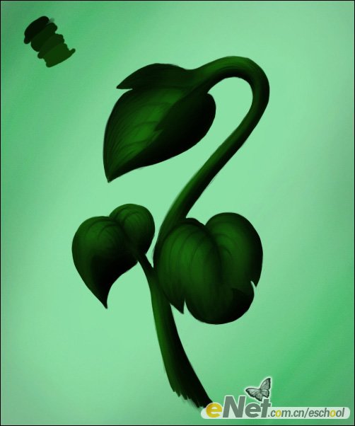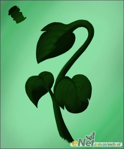 27、最后一步,用模糊工具把叶子打磨圆滑,然后用深色画笔修正植物的轮廓。
