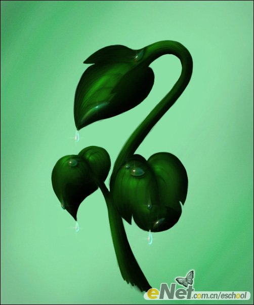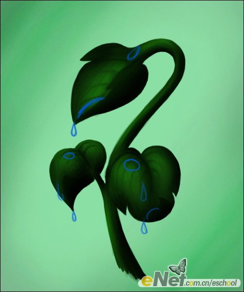 11、植物基本上完成了。现在我们开始画露珠。还是先用简单的画笔工具勾出露珠的轮廓。