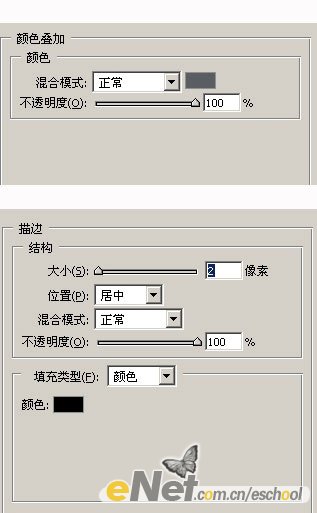 再给它加入颜色叠加和描边图层样式。