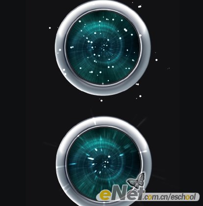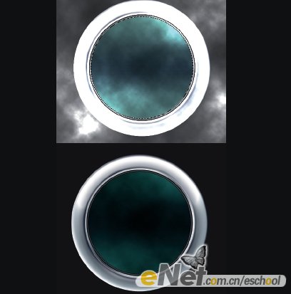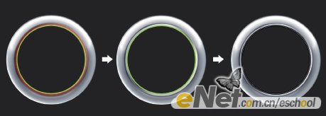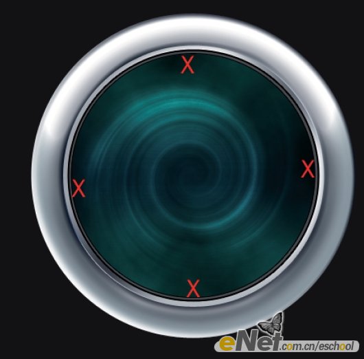 下面我们开始制作: 1.建立一新文档,用深灰色填充背景层。在文档的水平居中位置用椭圆工具建立一正圆选区并用白色填充选区再将其重命名为 B CircLe。