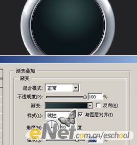 6.选择M CircLe层加入渐变叠加和描边图层样式。