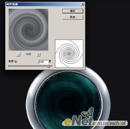 11.复制云彩层,将复制层命名为Twirl并将图层混合模式设置为颜色减淡。执行图层-图层蒙版-应用。之后再次按住CTRL 点击Screen层载入其选区,然后执行滤镜-扭曲-旋转扭曲。