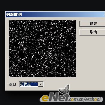 14.建立一新图层并命名为S stars,用黑色填充后设置图层混合模式为颜色减淡。再执行滤镜-像素化-铜板雕刻。