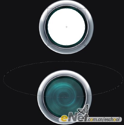 1.建立一新文档,用深灰色填充背景层。在文档的水平居中位置用椭圆工具建立一正圆选区并用白色填充选区再将其重命名为 B CircLe。