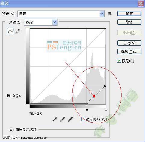 2、创建曲线调整图层参数设置如下图,确定后用黑色画笔擦出中间部分,掌握好透明,这样很重要,