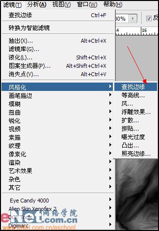 复制背景图层,对背景副本使用滤镜---风格化---查找边缘.