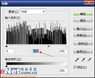 5,色阶调整 将中间灰调为0.5。