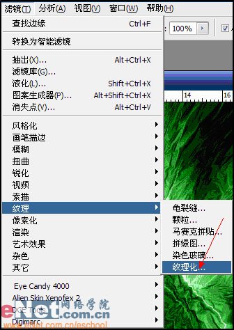 7,关闭素材1文件,回到已经做好的背景文件,对该图层复制1份。对副本图层使用滤镜---纹理---纹理化,设置参数如下图所示。