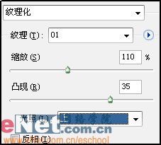 选择前面已经作好的“待用文件”纹理参数设置如下