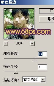 3、新建一个图层,按Ctrl Alt Shift E盖印图层,执行菜单:滤镜 > 画笔描边 > 喷色描边,参数设置如图5,加上图层蒙版把人物部分用黑色画笔擦出来,效果如图6。
