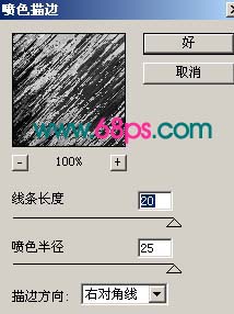 3、新建一个图层按Ctrl ALt Shift E盖印图层,按Ctrl Shift U去色,然后执行菜单:滤镜 > 画笔描边 > 喷色描边,参数设置如图3,确定后加上图层蒙版,用黑色画笔把人物部分擦出来,效果如图4。