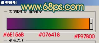 3、创建渐变映射调整图层,颜色设置如图4,确定后把图层混合模式改为“叠加”,效果如图5。