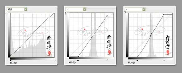 1、打开素材图片,选择菜单:图像 > 模式 > Lab模式,创建曲线调整图层,分别对 A、B、明度通道进行调节,参数设置如下图。