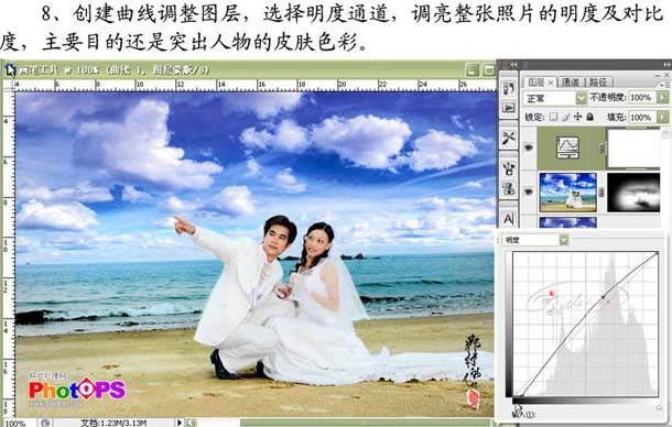 8、创建曲线调整图层,选择明度通道,参数设置如下图。