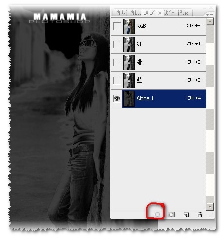 4.进去通道面板,选择ALPHA1,通道作为选区载入这个通道,设置如图
