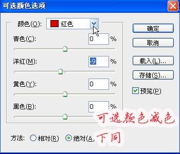 6、选择菜栏图像——调整——可选颜色,调整红色,如下设置: