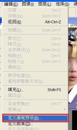 2、选择菜单:编辑 > 定义画笔预设。