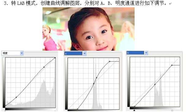 3、选择菜单:图像 > 模式 > Lab颜色,确定后创建曲线调整图层,参数设置如下图。