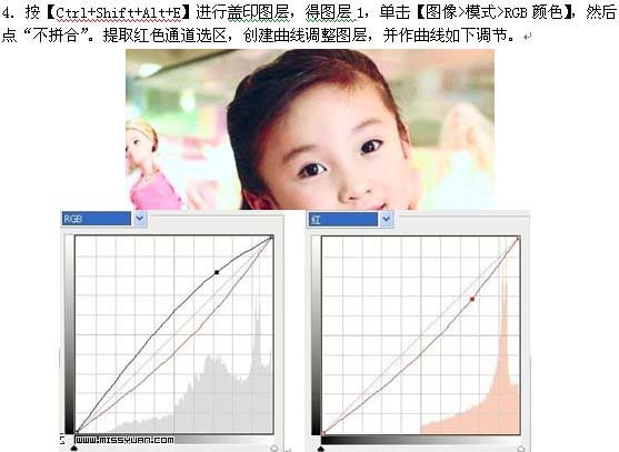 4、新建一个图层,按Ctrl Alt Shift E盖印图层,得到图层1。然后选择菜单:图像 > 模式 > RGB颜色,点“不拼合”。确定后按Ctrl Alt 1提取红色通道选区,再创建曲线调整图层,参数设置如下图。