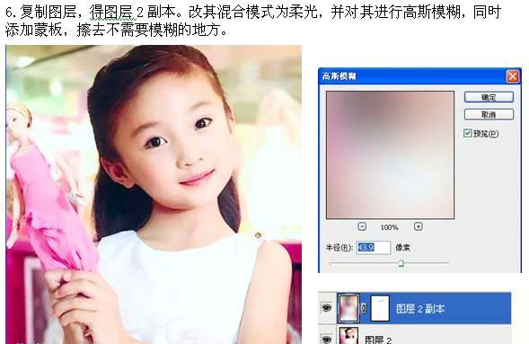 6、复制图层2,得到图层2副本,执行:滤镜 > 模式 > 高斯模糊,数值为:43.9,确定后把图层混合模式改为“柔光”,加上图层蒙版把不需要模糊的地方用黑色画笔擦掉。