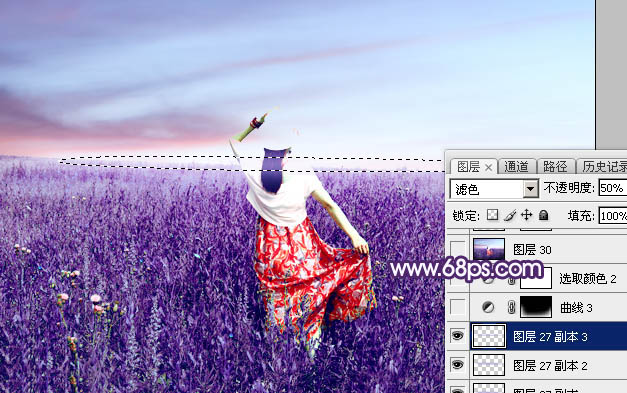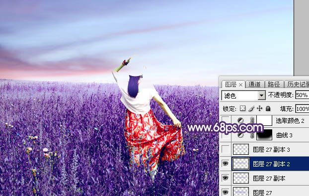16、按Ctrl + J 把当前图层复制一层,混合模式改为“滤色”,不透明度改为:50%,效果如下图。