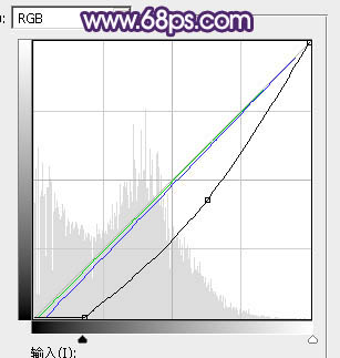 29、按Ctrl + Alt + 2 调出高光选区,按Ctrl + Shift + I 反选,然后创建曲线调整图层,把暗部稍微调暗一点,参数及效果如下图。