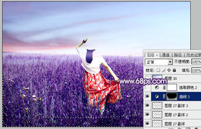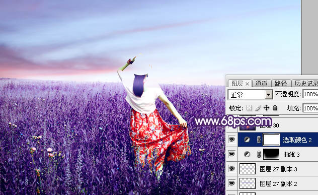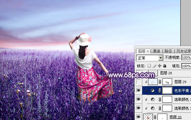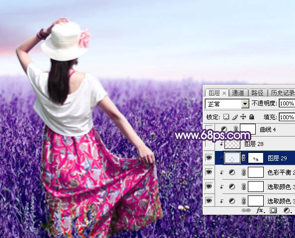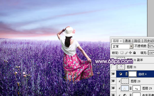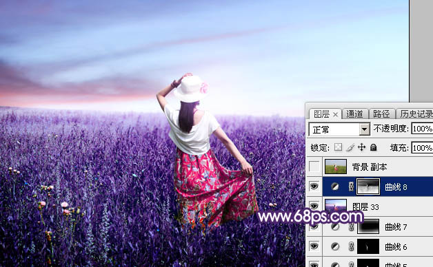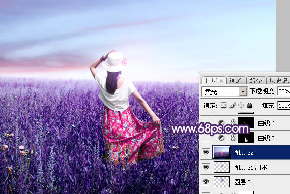 Photoshop调制出魔幻的蓝紫色草原人物图片