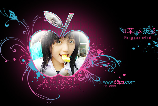 本教程利用苹果的图形来制作个性签名效果,平时我们习惯了四方四正的相片,偶尔改变下口味把她换成其他形状的就更能突出自己的个性!教程只是一个参考,有其它更多图形的正等你去创作!