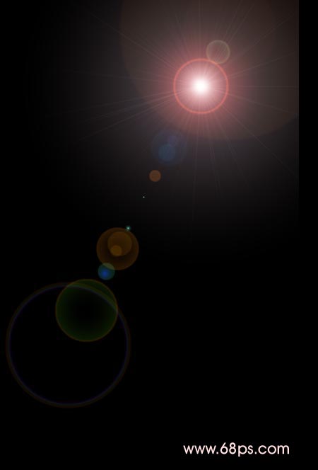 10.新建一个图层填充黑色然后执行菜单:滤镜 > 渲染 > 镜头光晕,效果如图14,然后把图层混合模式改为“强光”效果如图15,这个效果也非常艺术,用来做签名效果也不错。再把图层不透明度改为:10%,效果如图16