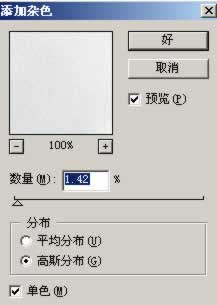 然后选择菜单:滤镜 > 杂色 > 添加杂色 参数设置如图