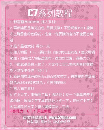 2.再新建一个图层填充为白色用橡皮工具不透明度为:15%,擦掉右上角露出粉色的花,注意一定要擦的自然。
