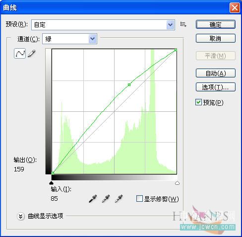 第三步:曲线调整.针对图中出现的偏红和偏暗的情况来提亮绿通道和蓝色通道