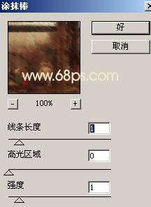 5.新建一个图层按Ctrl Alt Shift E盖印图层执行菜单:滤镜 > 艺术效果 > 涂抹棒,参数设置如图7,确定后把图层混合模式改为“强光”,图层不透明度改为:40%,效果如图8。