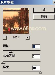 5.新建一个图层按Ctrl Alt Shift E盖印图层执行菜单:滤镜 > 艺术效果 > 胶片颗粒,参数设置如图9,确定后把图层不透明度改为:50%,效果如图10。