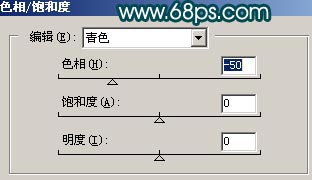 4.新建一个图层按Ctrl Shift Alt E 盖印图层,然后点通道面版,点绿色通道按Ctrl A 全选,按Ctrl C复制,点蓝色通道按Ctrl V 粘贴,回到图层面版按Ctrl U调色相/饱和度分别对红色和青色调整参数设置如图5-6,效果如图7