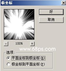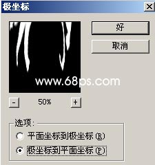 3.执行菜单:图像 > 旋转画布 > 逆时针90度,然后执行菜单:滤镜 > 扭曲 > 极坐标,参数设置如图5