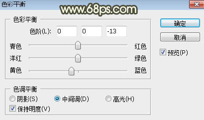 14、创建色彩平衡调整图层,对中间调,高光进行调整,参数设置如图23,24,确定后创建剪切蒙版,效果如图25。这一步给人物部分增加暖色。
