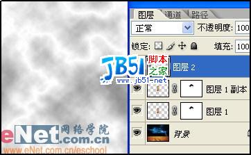 新建图层2,设置前景色为黑色,背景色为白色。执行“滤镜”→“渲染”→“云彩命令”。