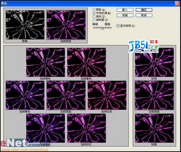 执行“图像”→“调整”→“变化”命令,在打开的对话框中分别单击三次“加深红色”和“加深蓝色”,再单击一次“加深洋红”。