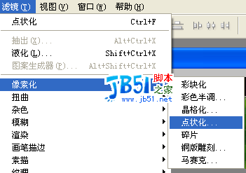 选择“滤镜”->“像素化”->“点状化”,参数设为5,见图:
