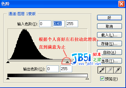 到此雨景效果已经基本承现,为了使雨景效果更加逼真,可以进行色阶调整,参数并不重要,只要自己觉得满意了就可以了。见图:
