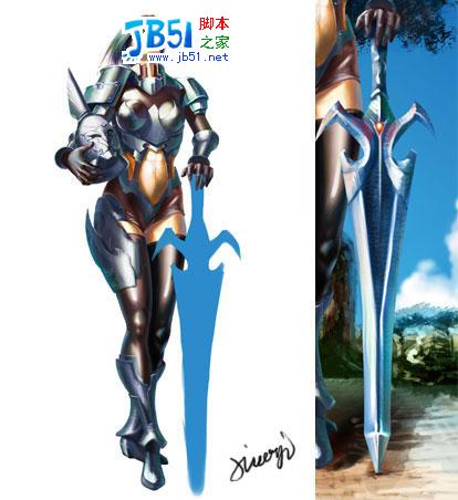| 11. 同层绘制重剑。注意质感。笔触跟着结构走。想拉直线别忘了SHIFT:) |