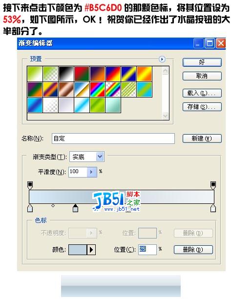 | 2.双击“按钮”层,弹出图层样式对话框,选择渐变叠加参数设置如下图 |