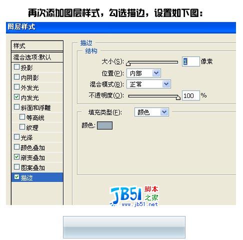 | 5.继续添加图层样式选择描边确定后完成最终效果。其它颜色的按钮只要设置渐变的色彩就可以了。 |