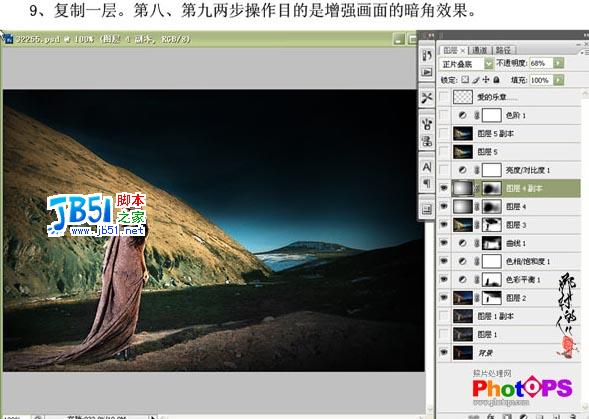 PS把偏暗照片调成海报效果