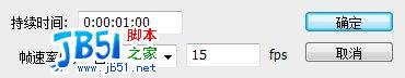 按钮)中将动画持续时间改为1秒,帧率改为15。如下图所示。这样动画总共就是15帧。需要注意的是:由于帧数是从1开始,而时刻是从0开始,因此开始时刻即00:00就是第1帧,那么第15帧应位于00:14时刻,而非00:15。这个问题以前已经提到过,这里重复一下。