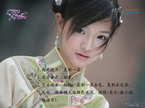 3、合并图层,复制一层去色,复制去色层,按Ctrl I反相,图层混合模式改为“颜色减淡”,执行:滤镜 > 其它 > 最少值,数值为1。