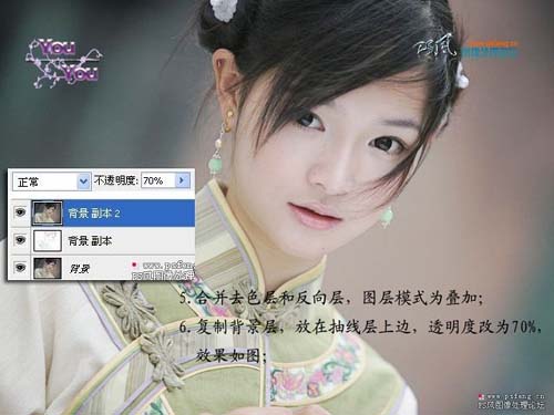 6、复制背景层,放在抽线层上边,透明度改为:70%。